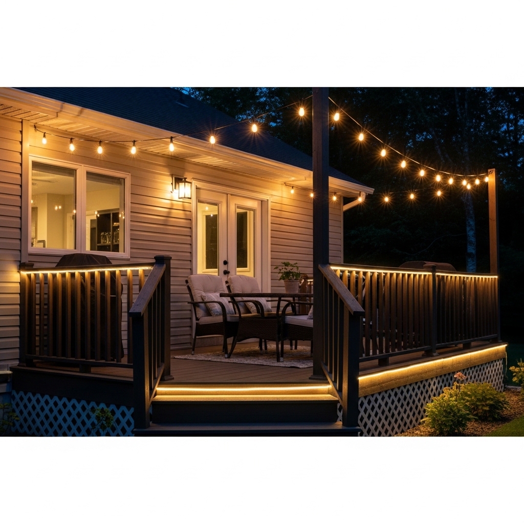 - The Strategy: String lights are your best friend. They are cheap, energy-efficient, and create a warm, festive atmosphere. Drape them overhead on your porch, zig-zag them across a deck, or hang them between posts .