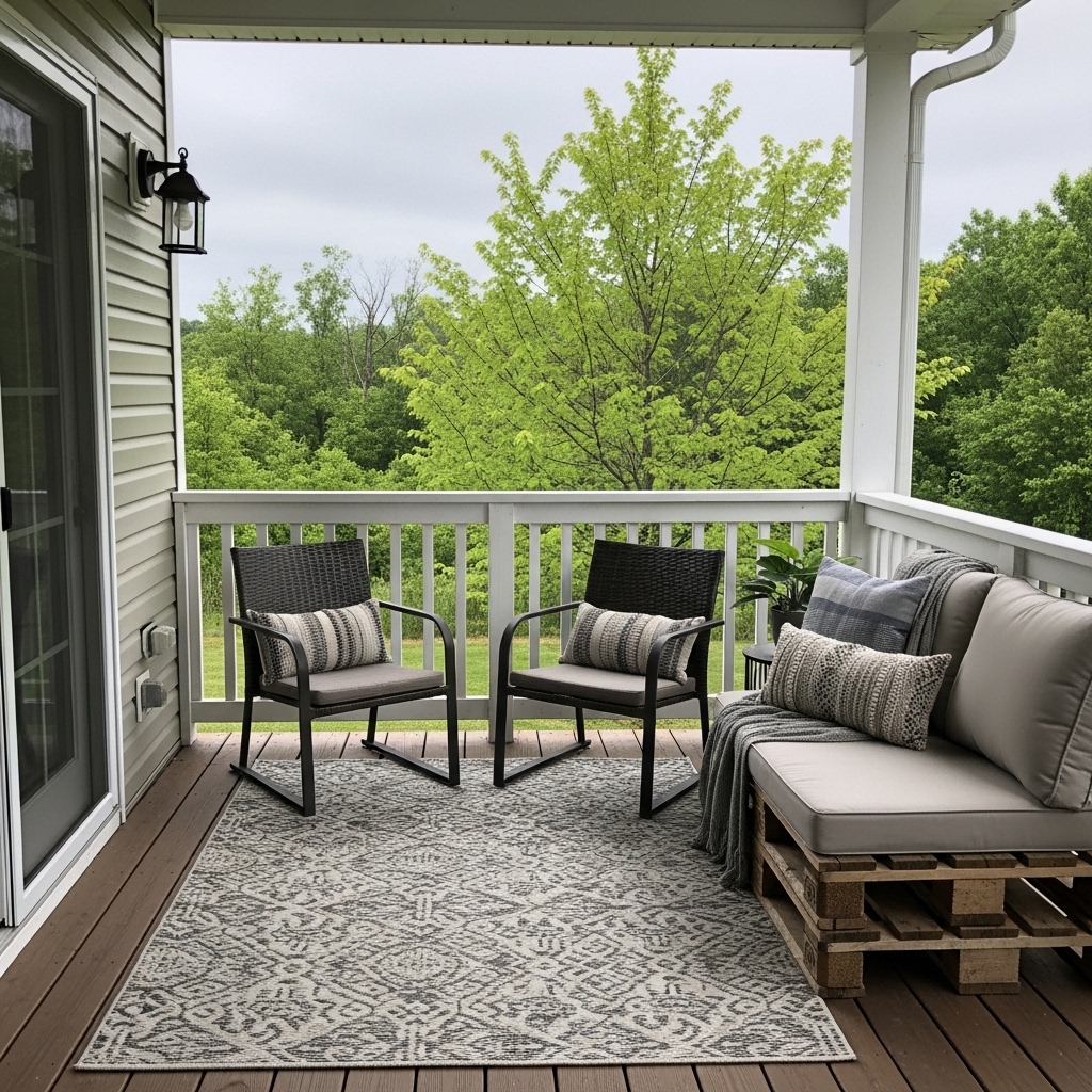 - Cozy Factor: Add softness with an outdoor rug. This instantly makes the space feel like an interior room. Layer on textured pillows and a throw blanket to complete the look .