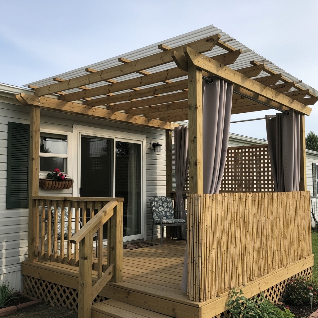 To truly make an outdoor space feel like a “room,” you need to define the vertical space. This also solves one of the biggest mobile home challenges: lack of privacy.