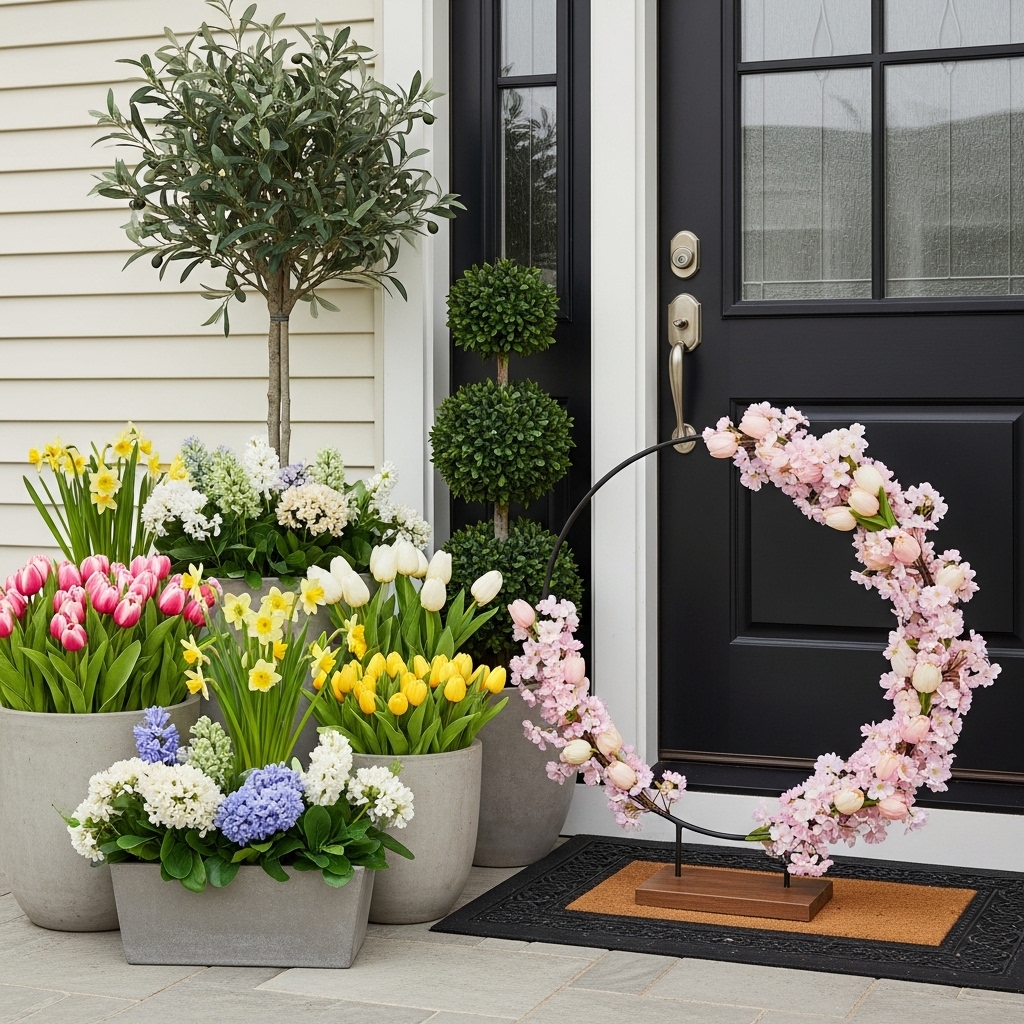 - Faux vs. Real: High-quality faux flowers are a major trend for their longevity and resilience against weather, allowing you to set your display in early April and enjoy it through the end of the month . If you prefer real flowers, use them in protected areas or be prepared to rotate them.