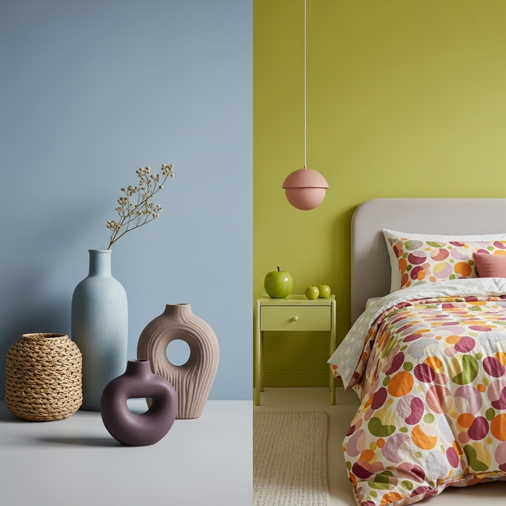 - Renewing: On the flip side, we see a revival of retro optimism. Here, the palette is juicier—apple green and dusty grape take center stage. These colors are appearing in playful, organic shapes and even retro floral prints on quilts and bed linens, bringing a sense of nostalgia and joy into the home.