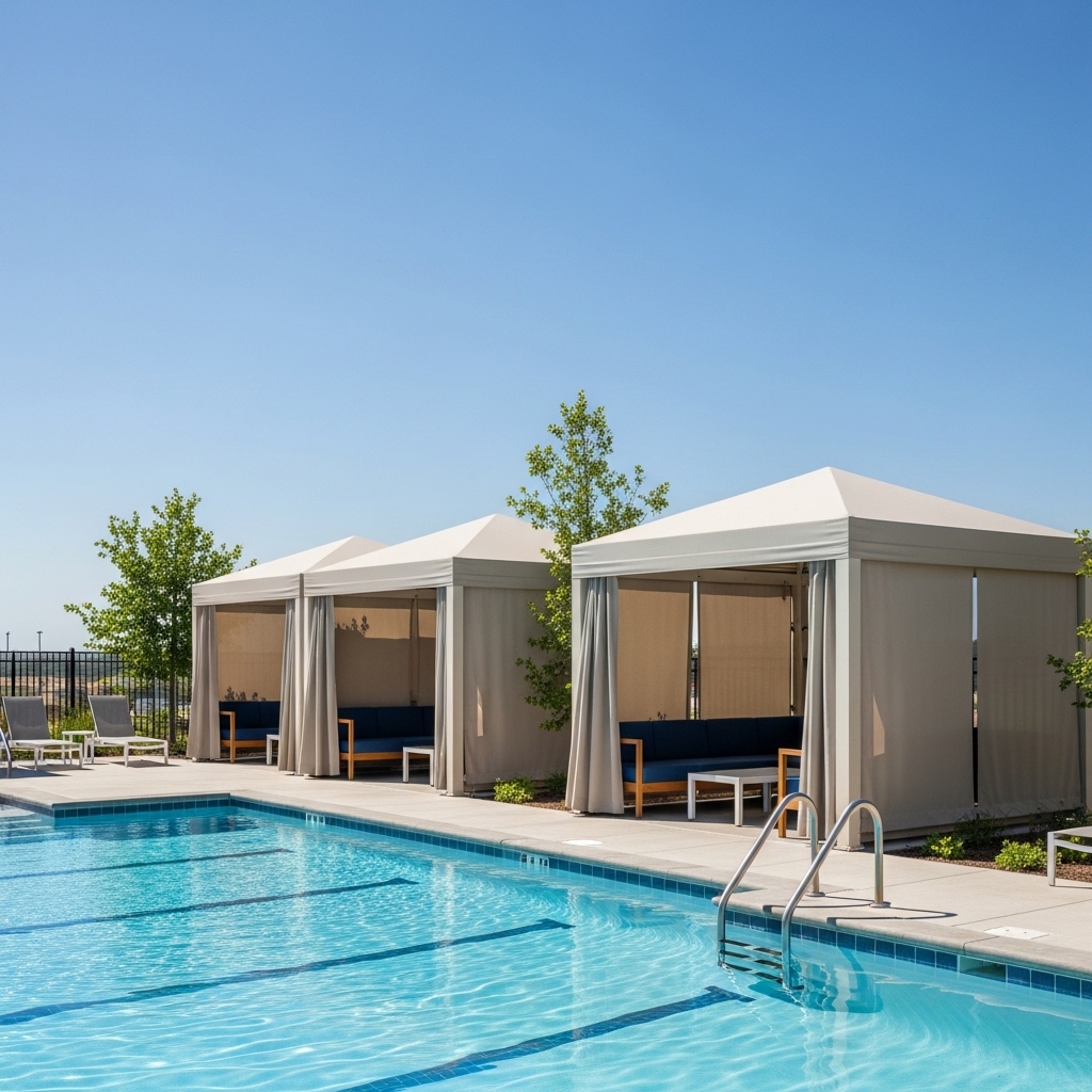 - Smart Features: Expect to see commercial-grade materials like solution-dyed fabrics that resist fading, robust powder-coated frames, and easy-to-clean surfaces becoming standard in high-end residential cabanas .