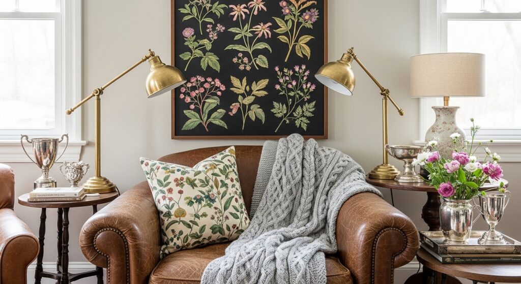 - Why It Works in 2026: It brings structure to the softness. Think of it as “prep without pretense”—cable-knit throws draped over a worn leather armchair, or silver trophies used as vases for wildflowers .